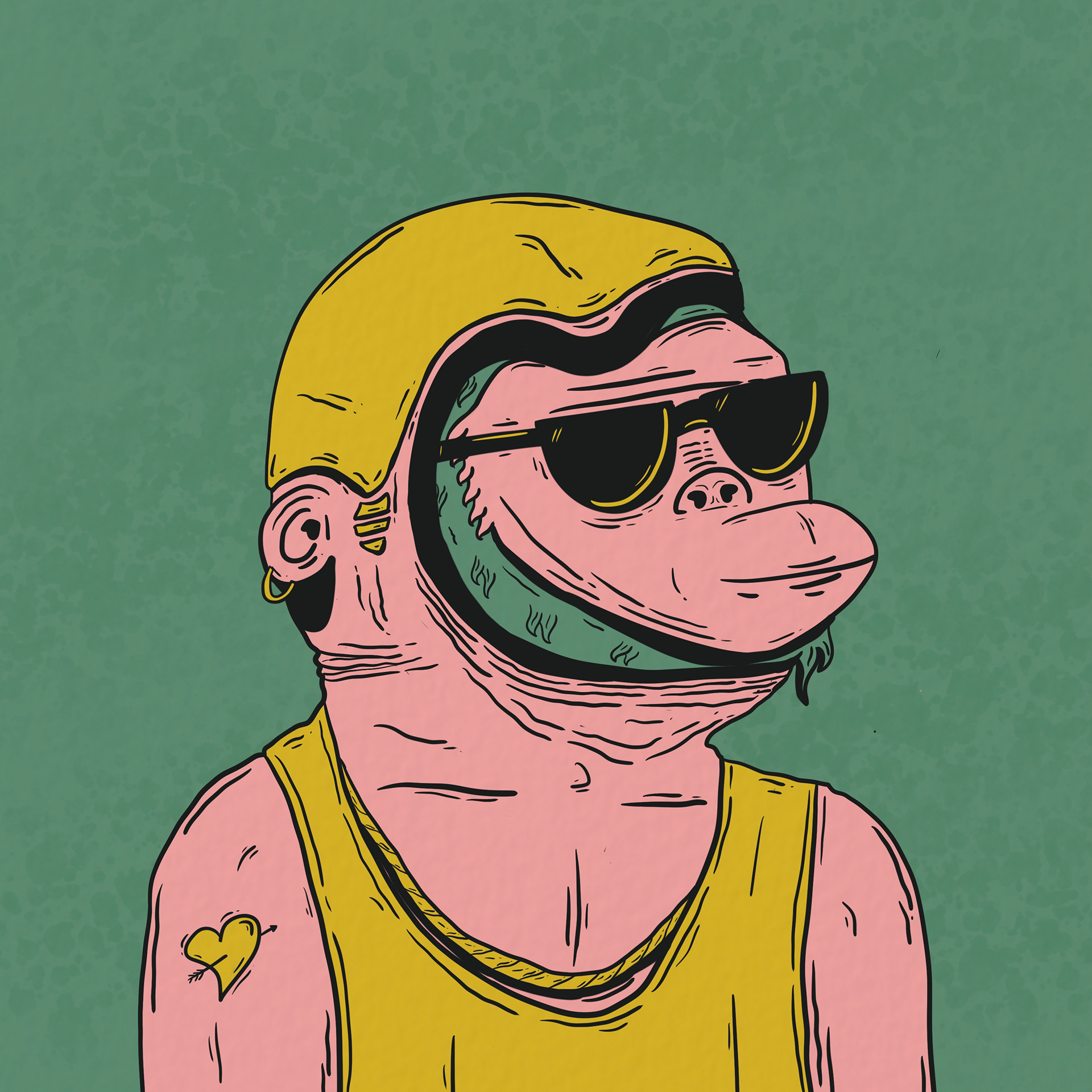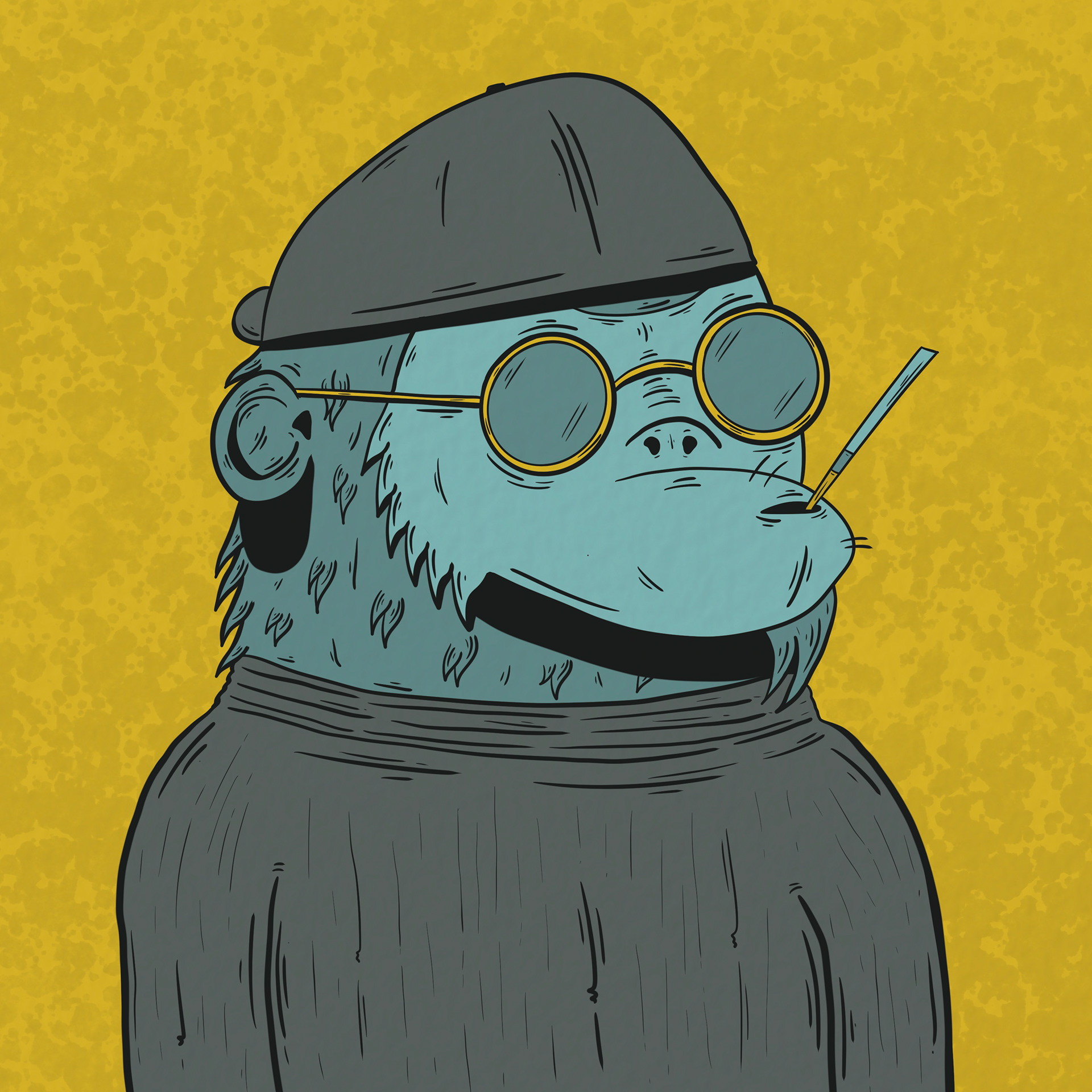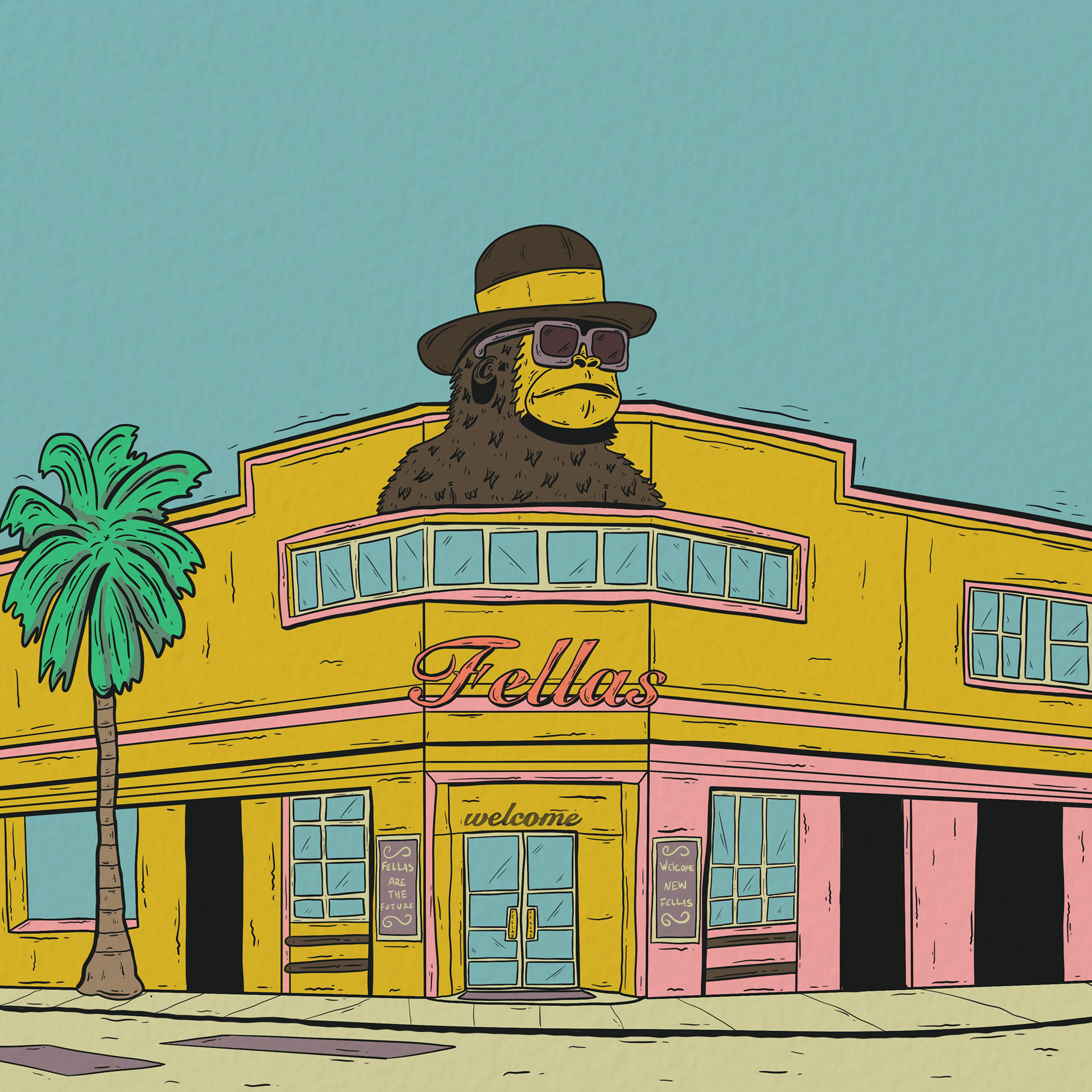 Fellas emerged during the early rise of boutique PFP communities on Solana, standing among the first to gain notable relevance. Conceived as both an experiment in portraiture and a study in character design, the collection became a bridge between art and community — a gathering point shaped by humor, pop sensibility, and digital culture. The name, a casual nod to friendship and shared identity, reflects the spirit of the project: informal, self-aware, and rooted in the intersection of internet culture, music, and visual art. Each piece reinterprets the recurring ape figure that defines much of the artist’s universe, exploring individuality through repetition and variation. Initially released in small drops that sold out within seconds, Fellas later adopted an auction model that reached record sales. Around it grew a network of collectors — the highest tier of support within the artist’s world — who gained access to exclusive artworks, collaborations, and ongoing community engagement. Collaborations with artists such as Scum, Hyblinxx, Nolegs, Ben Bauchau, and Utopia further expanded the universe, each contributing their own version of a Fella. Beyond its format, the collection endures as a cultural node — a testament to how digital art can create belonging, spark dialogue, and turn collectors into participants in a shared creative world.